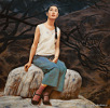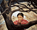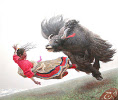 Schöne Bilder des chinesischen Künstlers, der für seine tibetanischen Bilder mit fliegenden Menschen, Schafen und Yaks bekannt ist.